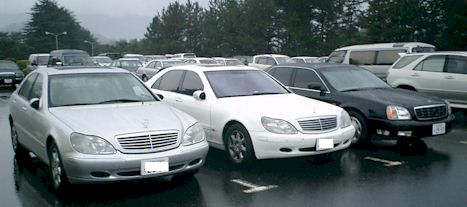 ![]() 友人たちのSクラスと並ぶ、私の4代目Cadillac DeVille 遠近法の分を差っぴいても余りある風格・それでいて威圧的でないと自己評価 |